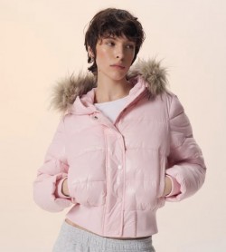 House - Błyszcząca kurtka puffer z odpinanym futerkiem przy kapturze różowa